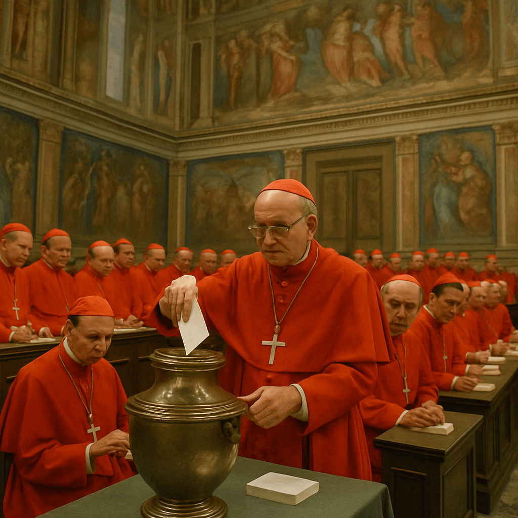 새 교황을 선출하기 위해 추기경단(Cardinals)이 모여서 실시하는 비밀 선거입니다. - 장소:
