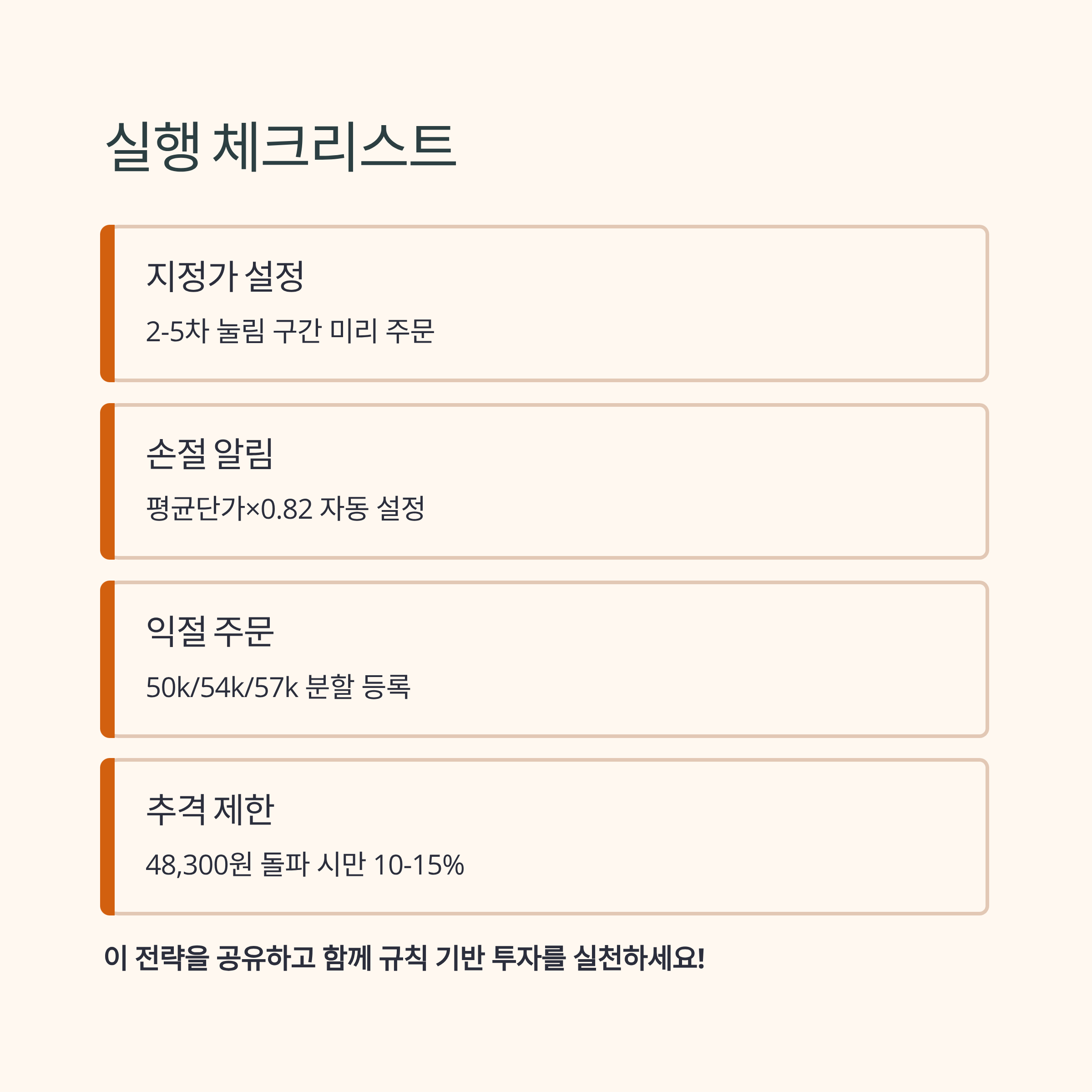 - 이미 1차 체결 후, 눌림 구간 도달 전에 오르면 → 추격 금지(예외: 48,300 종가 돌파 시 소량)