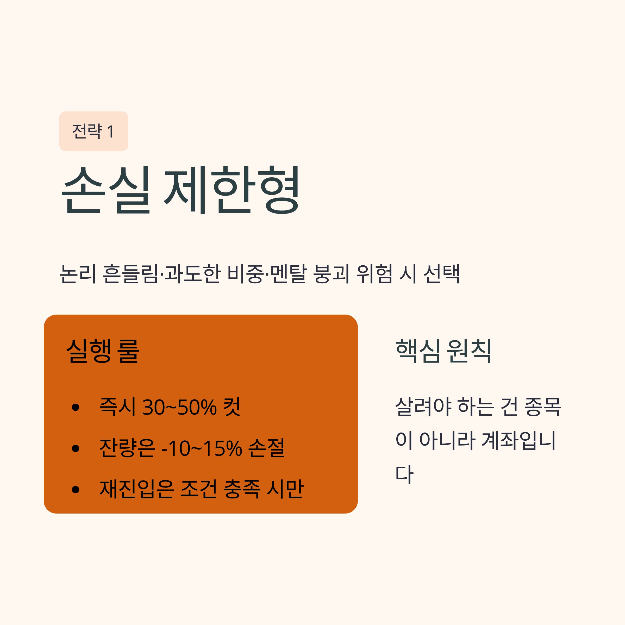 - 즉시 30~50% 컷: “살려야 하는 건 종목이 아니라 계좌”