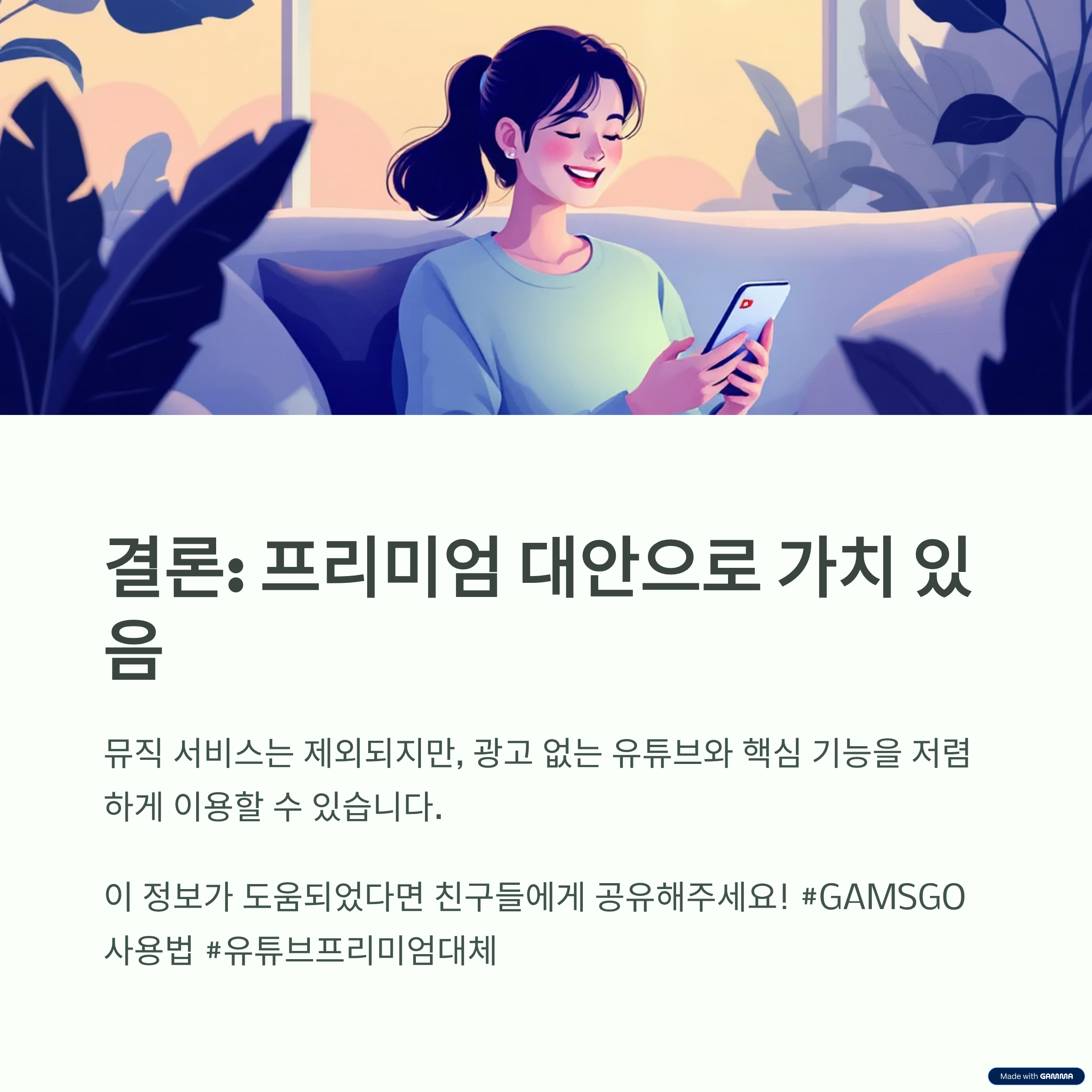 GAMSGO는 유튜브 프리미엄의 일부 기능을 우회 제공하는