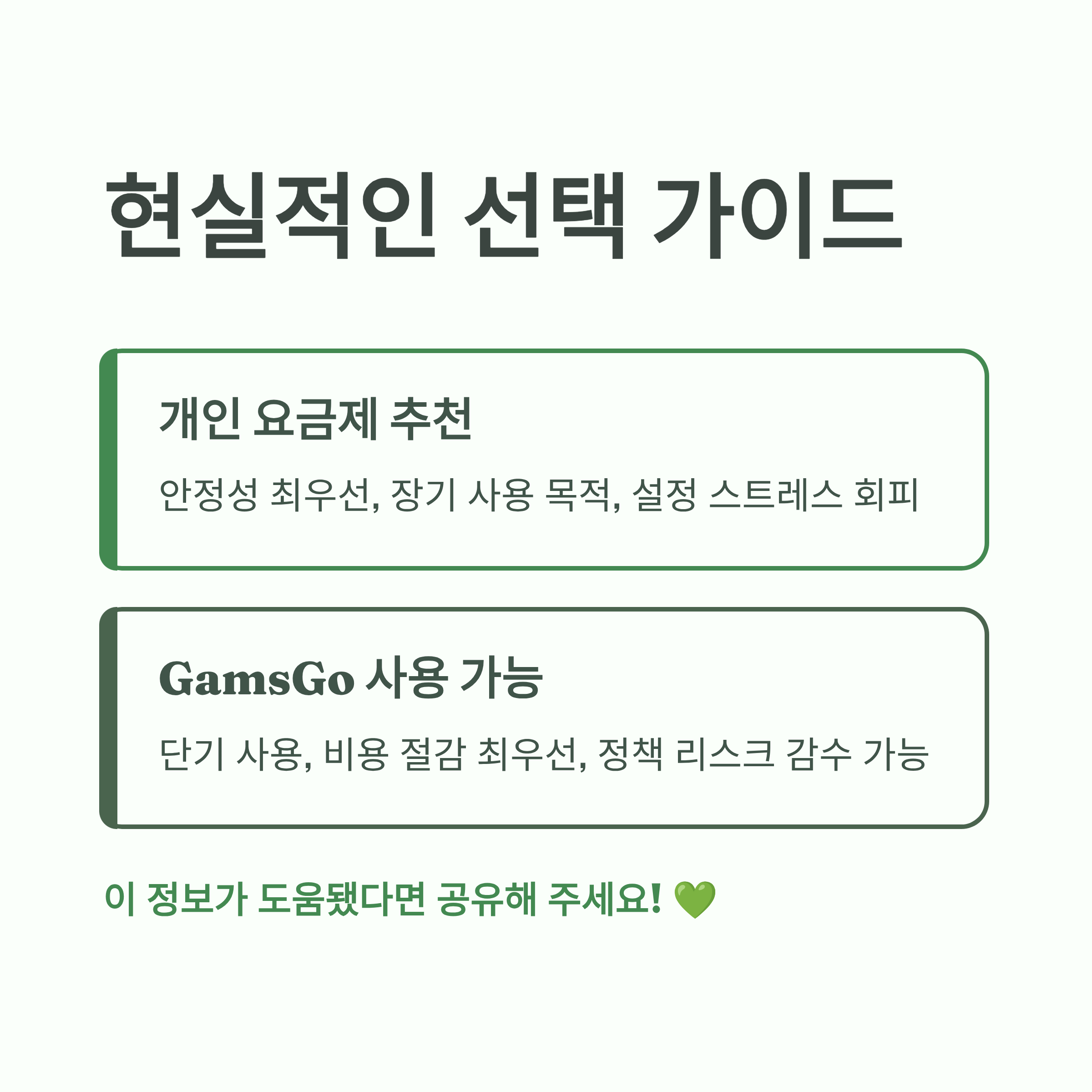 - 장기 안정 사용: 개인 요금제가 더 합리적
